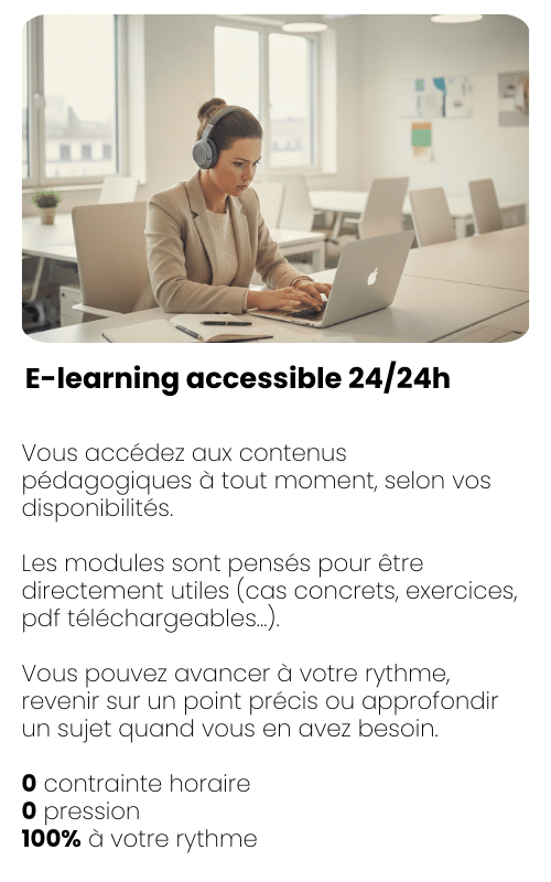 Vous avancez à votre rythme, sans contrainte horaire imposée.